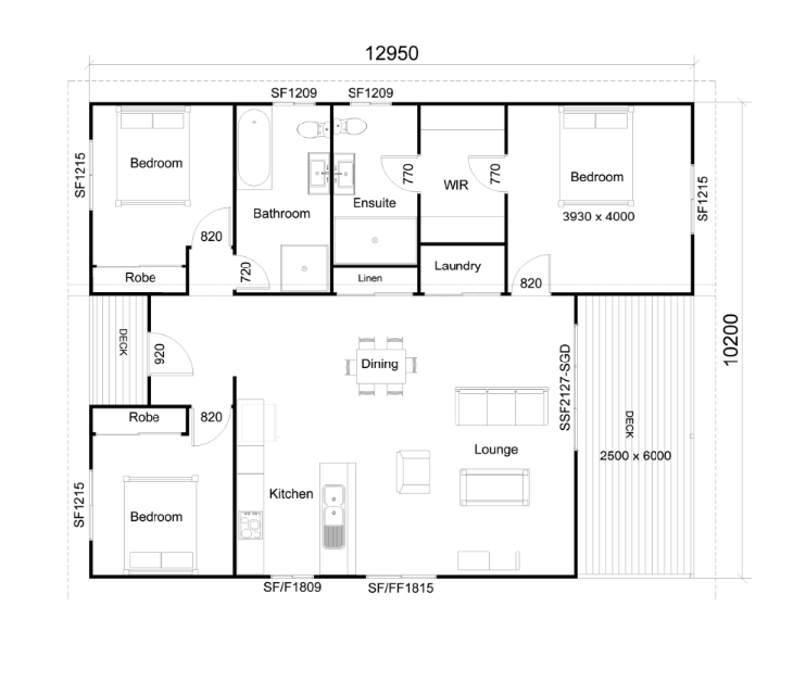 The Kate 130 design is an open plan design with beautifully incorporated outdoor decks. Featuring an open plan kitchen and walk in robe in master. This design has lots of street appeal with a beautiful front porch and rear deck.